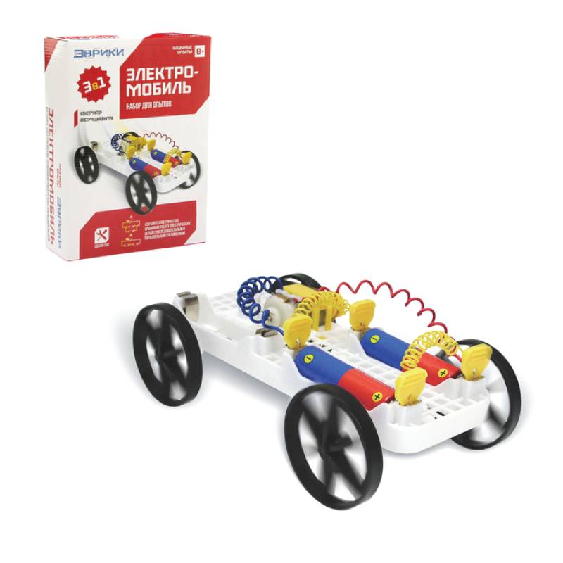 С набором торговой марки «Эврики» ребёнок изучит работу электрических цепей, познакомится со свойствами напряжения и силы тока. Также юный изобретатель сконструирует электромобиль и научится управлять им.