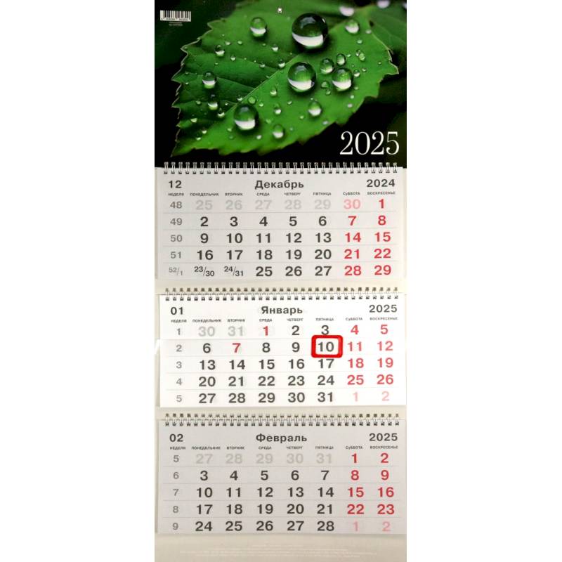 —Календарь на 2025 год трехблочный. Капли дождя