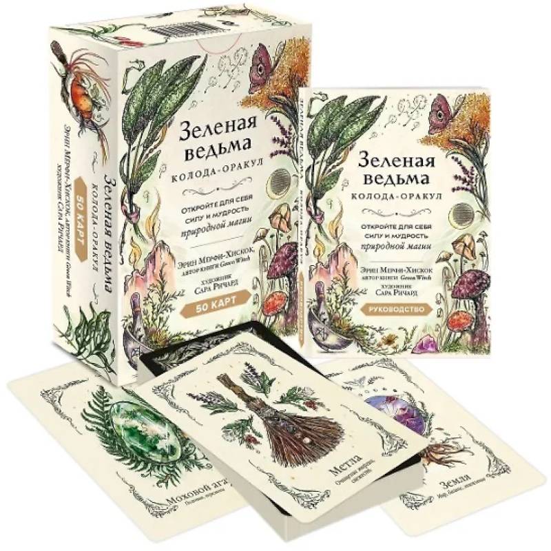 Оракул «Зеленая ведьма» — это 50 карт, которые созданы художницей Сарой Ричард и предназначены для пробуждения интуиции и усиления магии.