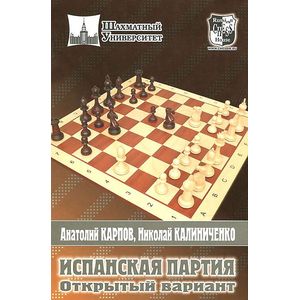 Новая книга многократного чемпиона мира А.Карпова и гроссмейстера, автора более 40 книг Н.Калиниченко посвящена одному из самых ярких и интересных вариантов Испанской партии. Большой вклад в теорию Открытого варианта внесли М.Эйве, М.Ботвинник, В.Смыслов, П.Керес, Б.Ларсен, В.Корчной и многие другие. В наши дни он прочно входит в репертуар В.Ананда, М.Карлсена, В.Иванчука и др. Выдающийся вклад в разработку варианта внес Анатолий Карпов, одержавший ряд блестящих побед в матчах на первенство мира.