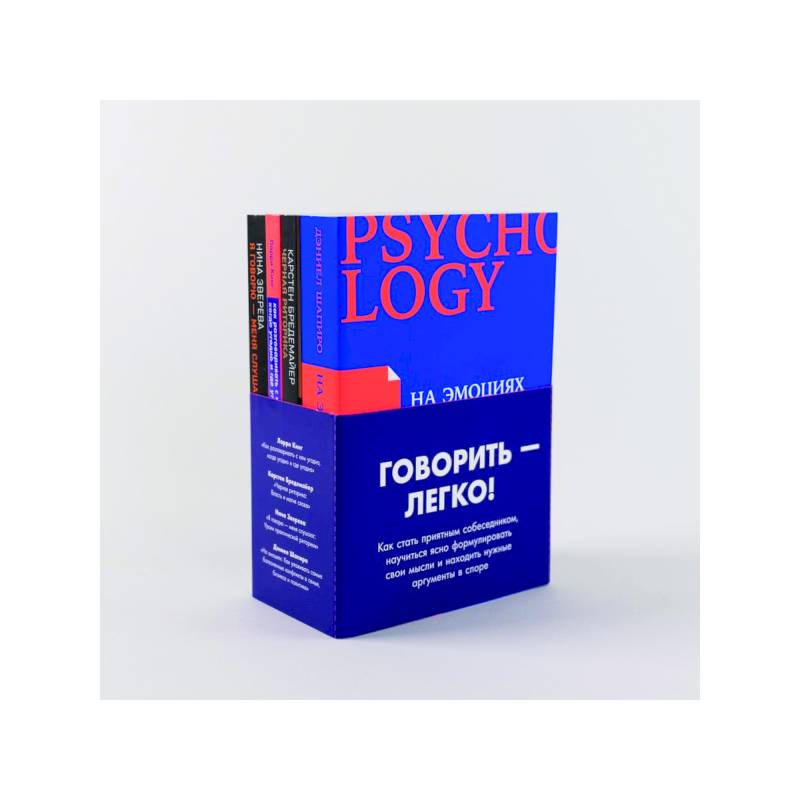 Как стать приятным собеседником, научиться ясно формулировать свои мысли и находить нужные аргументы в споре? В этом помогут книги «Альпины» об уверенном общении. Прочитав их, вы всегда сможете подобрать правильные слова и справитесь с эмоциями даже в самых сложных разговорах. Легендарный телеведущий и интервьюер Ларри Кинг в своем бестселлере «Как разговаривать с кем угодно, когда угодно и где угодно» делится советами, как уверенно вступать в беседу с самыми разными людьми, а главное – получать от этого удовольствие. Ее прекрасно дополняет «Черная риторика» Карстен Бредемайер – остроумная книга о том, как оставаться победителем в любом разговоре. Для тех, кому хочется с блеском выступать на публике, бизнес-тренер Нина Зверева в книге «Я говорю — меня слушают» дает практические советы, как побороть страх перед аудиторией, привлекать и удерживать внимание слушателей, выработать свой уникальный стиль и стать мастером публичной риторики. Завершает подборку увлекательная книга психолога и профессионального переговорщика Дэниела Шапиро «На эмоциях», в которой он объясняют природу конфликтов — от семейных ссор до международных споров, а также делится способами предотвращать их, регулировать и переживать с минимальными потерями.