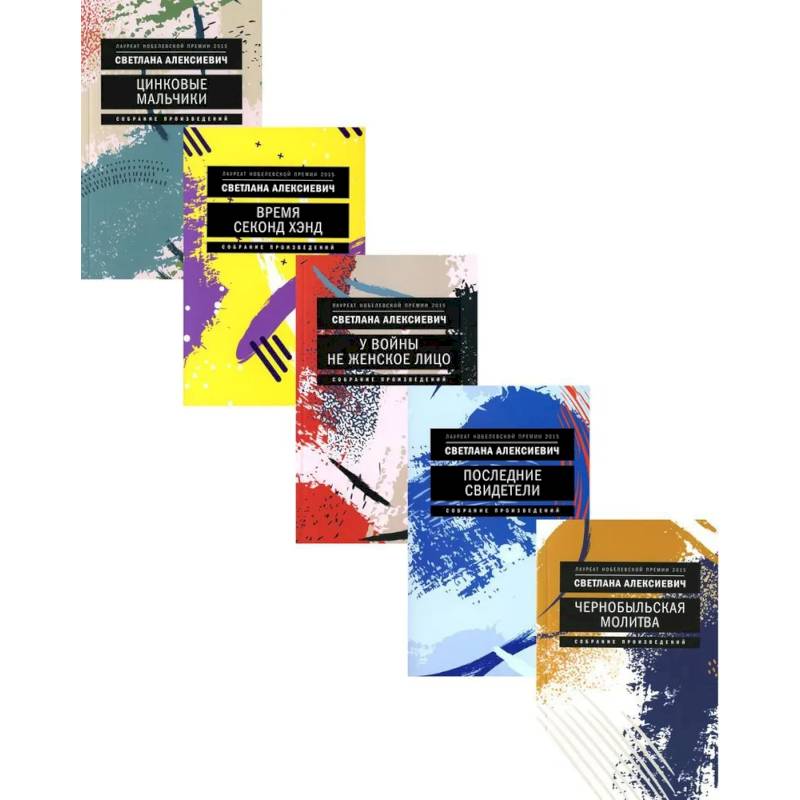 В комплект входят пять книг: «У войны не женское лицо», «Чернобыльская молитва», «Цинковые мальчики», «Время секонд-хэнд», «Последние свидетели: соло для детского голоса».