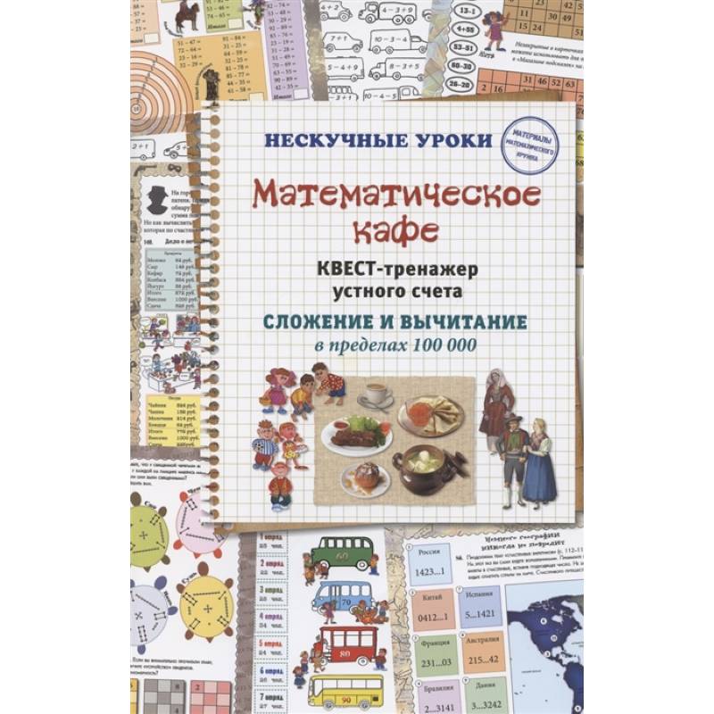 «Устный счет — гимнастика для ума». Сделать его интересным и разнообразным поможет данный тренажер. Решив примеры, ребенок может «купить» какое-либо блюдо в нашем математическом кафе. Задание каждого разворота направлено на отработку определенного типа примеров устного счета от счета в пределах 10 до сложения и вычитания четырехзначных чисел.