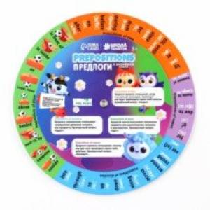 Вращающаяся картонная шпаргалка 'Предлоги в английском языке' поможет вашему ребёнку безошибочно употреблять предлоги в речи.