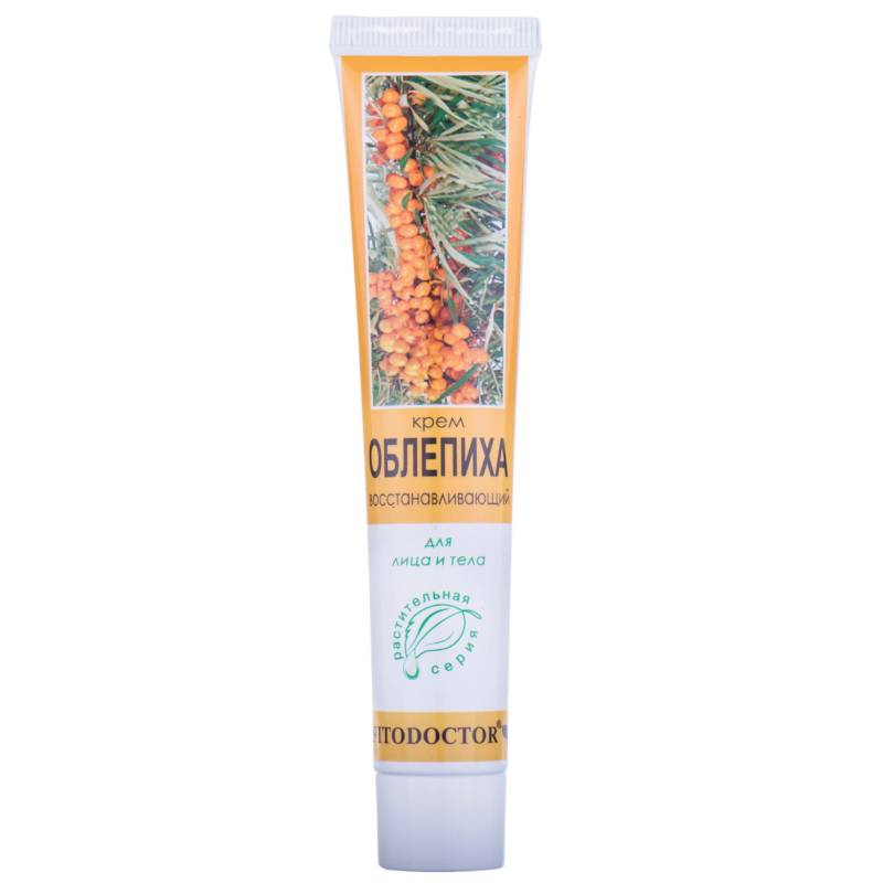 Восстанавливающий крем 'Облепиха' для лица и тела Фитодоктор включает экстракт облепихи. Он является кладезем витаминов А, Е. Данные элементы заживляют ранки. Снимают воспаление. Убирают покраснения. Успокаивают кожный покров. Устраняют шелушения. Предотвращают раздражения.