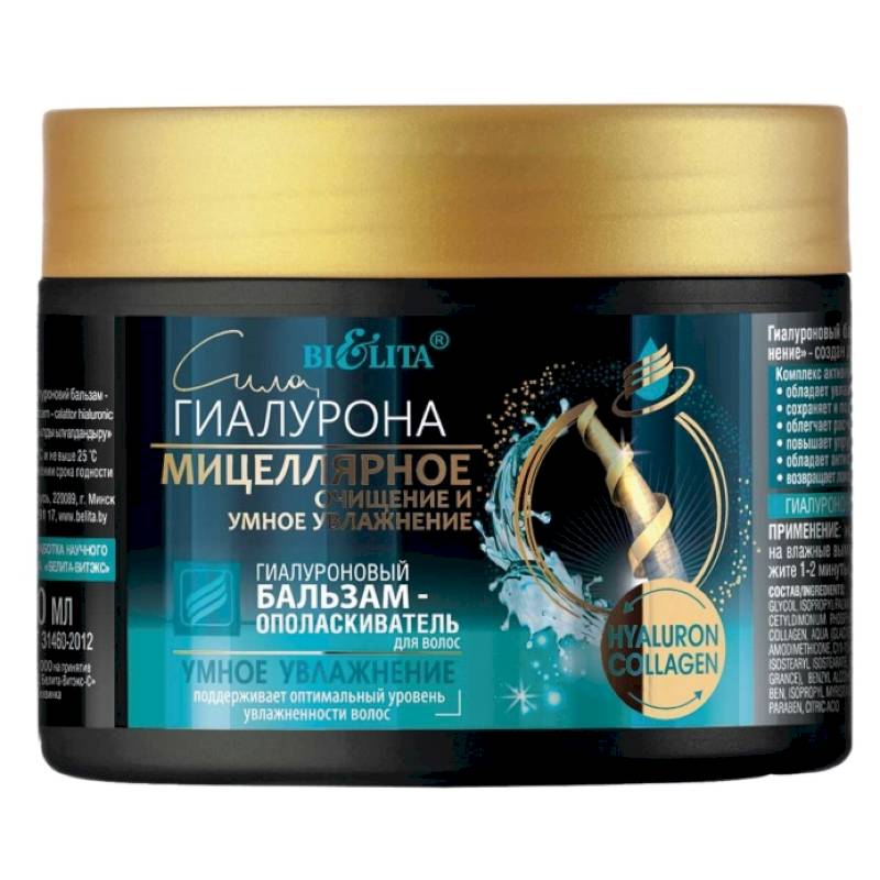 Применение: нанесите 'Гиалуроновый бальзам-ополаскиватель' на влажные вымытые волосы, распределите по всей длине, выдержите 1-2 минуты, смойте водой.